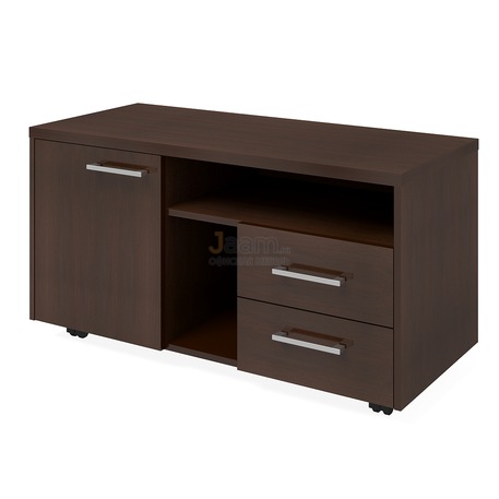 Офисная тумба сервисная ПК-АТШМ-ТМВ122Х53У №45850 - столешница: дсп шпон 38мм мм, кромка: пвх 1мм, покрытие: шпон, стекло: тонированное.ШxГxВ | 122x53x58 |