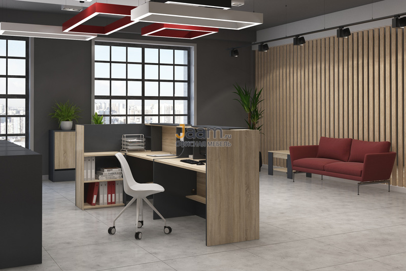 Место администратора — особая зона, при обустройстве которой важно соблюсти баланс между эстетикой и удобством. Стойка ресепшн Инновация — стильный вариант, который подчеркнет статус компании и обеспечит сотрудникам максимальный комфорт во время работы. Модель одновременно выполняет функции рабочего стола для персонала и гостевой столешницы для посетителей. Она выполнена из материалов с высоким запасом прочности, поэтому легко справляется с любыми нагрузками и позволяет ежедневно обслуживать большой поток клиентов.